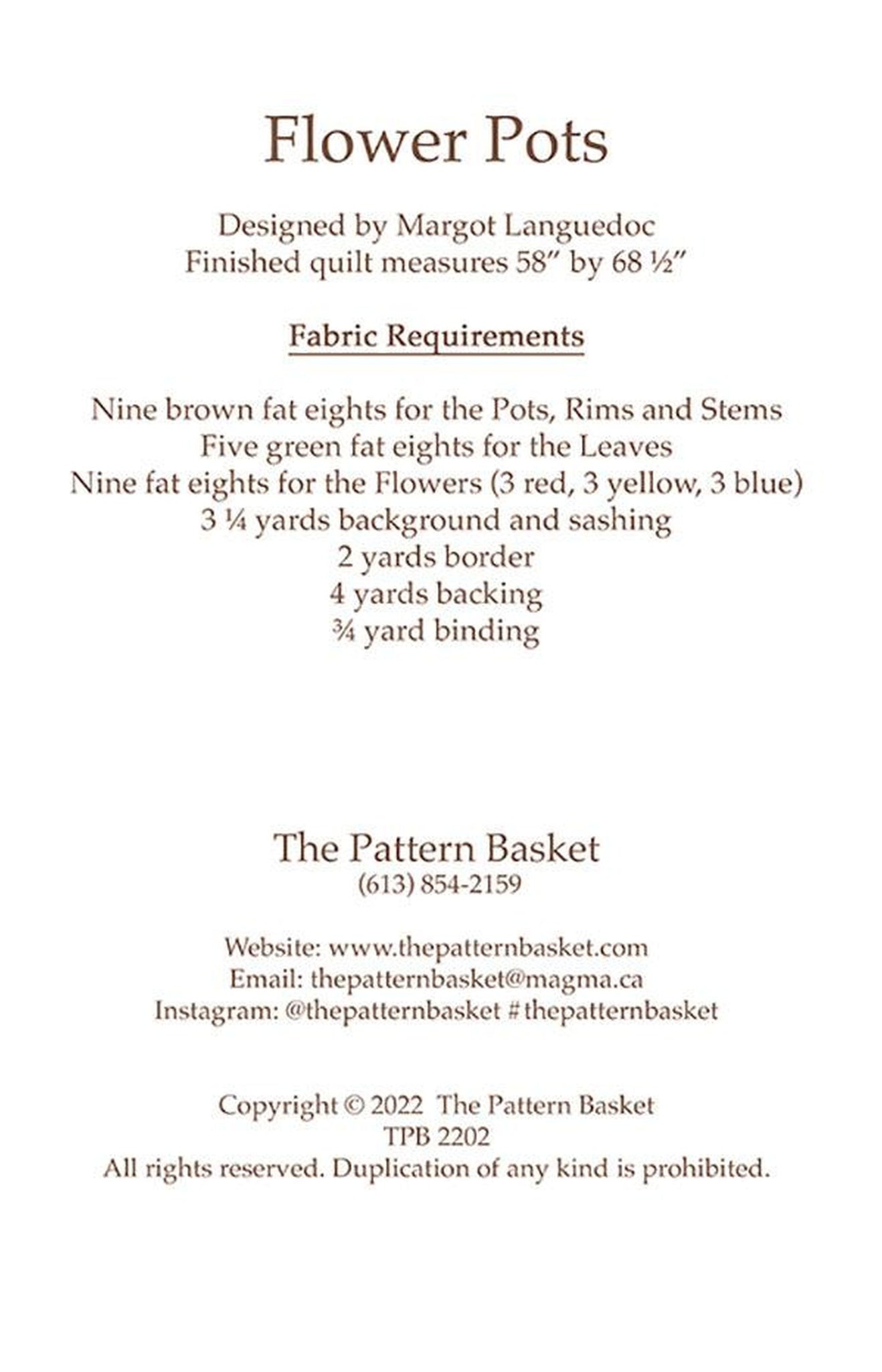 Flower Pots Pattern TPB 2202 from the Pattern Basket by the pattern
