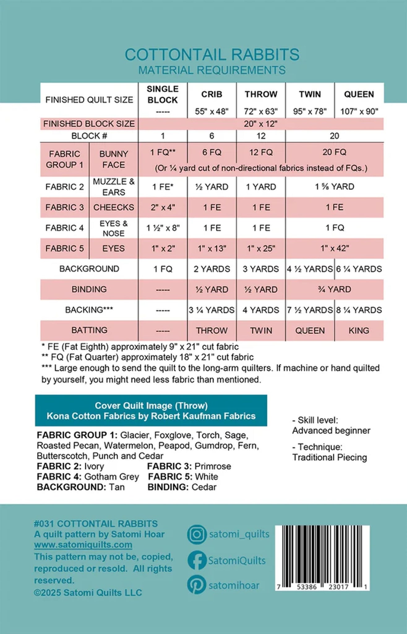 Cottontail Rabbits Quilt Pattern from Satomi Quilts LLC by the pattern