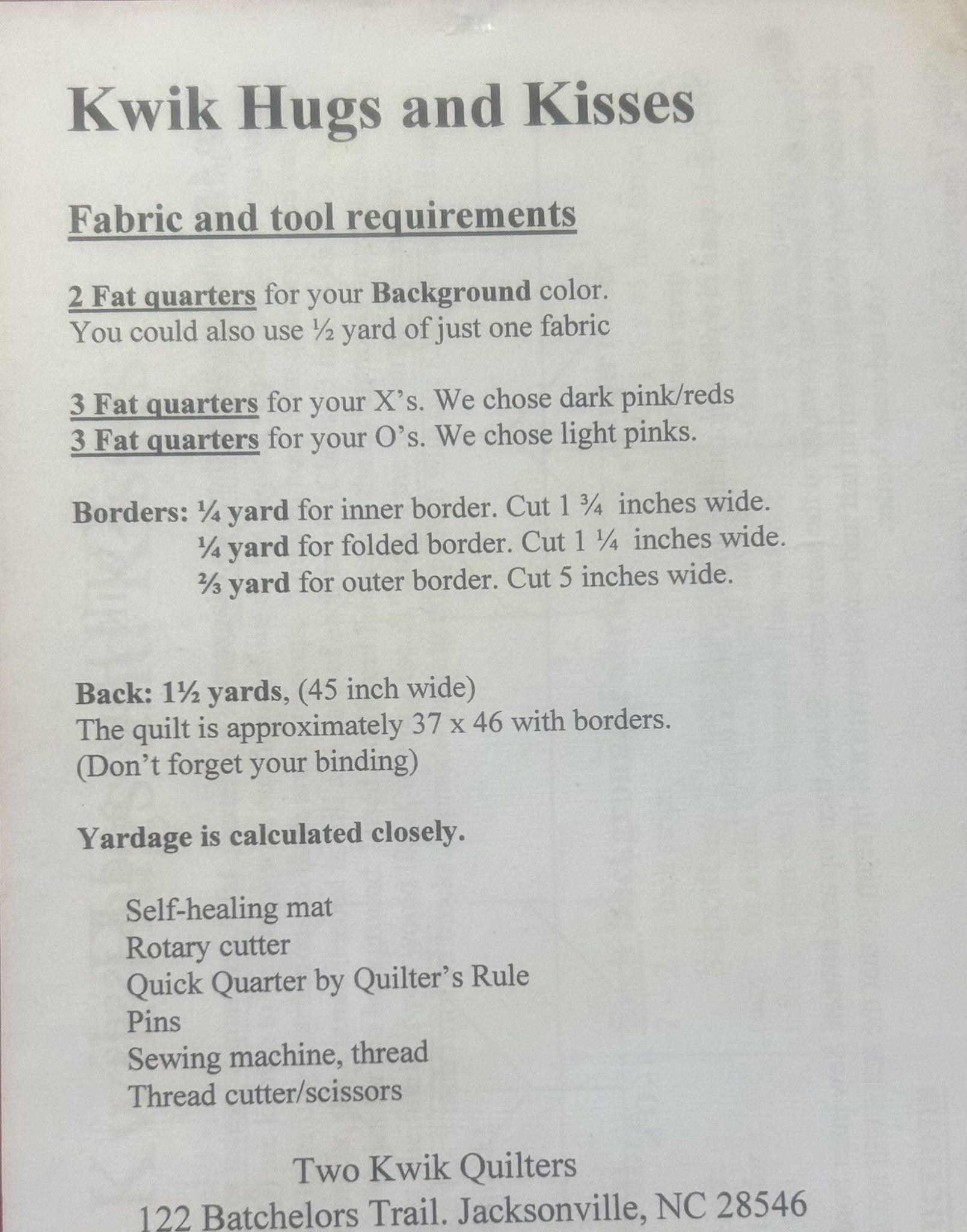 Kwik Hugs and Kisses Pattern TKQ20 from Two Kwik Quilters
