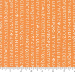 Alphabet Text and Words Stripe Agatha Road Pumpkin 35411 12 by Fig Tree Co from Moda by the yard. 100% cotton, 45" wide. Multiple yard purchases will be shipped in one continuous cut.