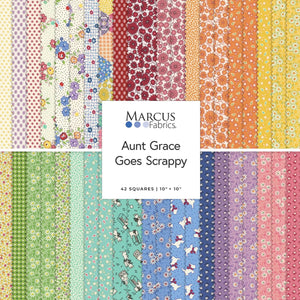 Aunt Grace Goes Scrappy 10" Squares SS147-0006 by Judie Rothermel from Marcus by the pack. 100% cotton. Forty Two 10" squrares.